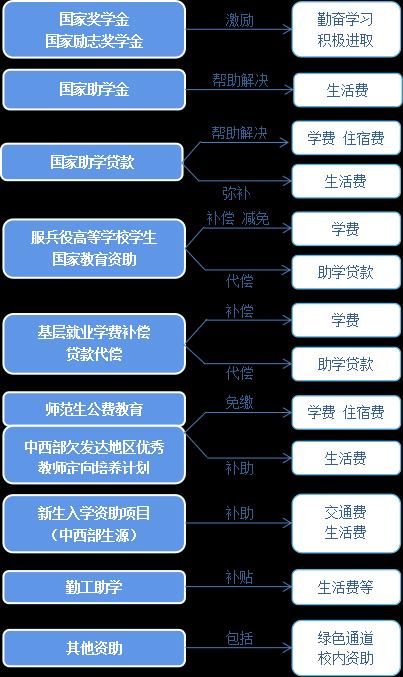 国家在高等教育本专科阶段建立起国家奖学金、国家励志奖学金、国家助学金、国家助学贷款等多种形式有机结合的高校员工资助政策体系。
