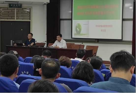 5月25日(周二)下午14:00,公司在龙湖校区4号楼311学术报告厅召开了河南省委党校田文富教授学术讲座。本次讲座主要讲授了《贯彻习近平调研南水北调讲话精神,推动生态保护与高质量发展》。