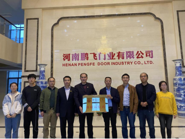 培训结束后,帮扶团来到河南鹏飞门业有限公司,公司总经理闫明杰就公司发展历程、加工生产及产品销售的现状进行介绍。张文勇表示,beat365高度重视脱贫攻坚工作,愿意就企业运营提供指导帮扶,并代表beat365与公司签订了“产学研”合作协议,授予公司“beat365科研试验站”牌匾。