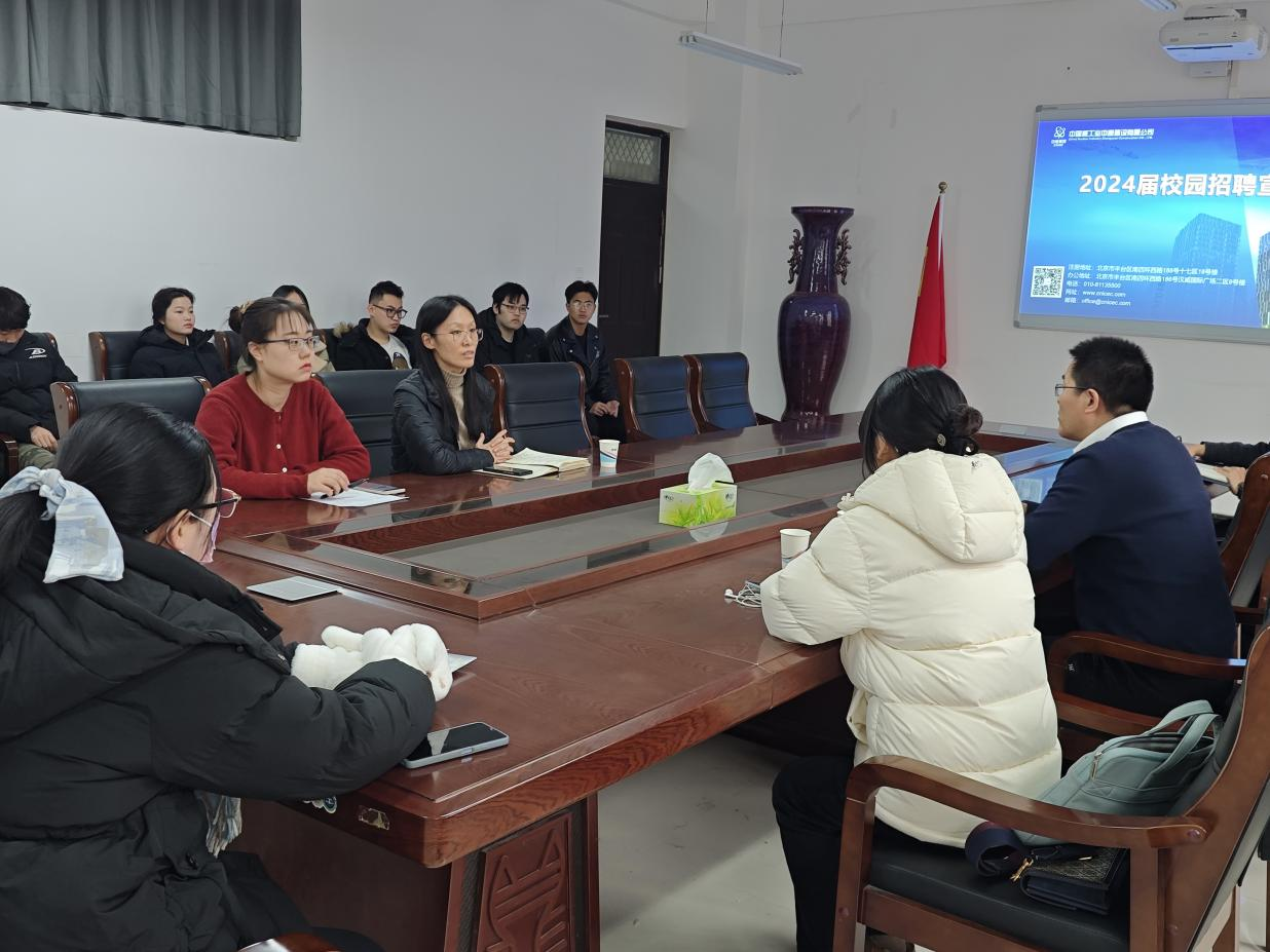 为促进2024届毕业生就业,引领低年级员工及早进行职业规划,公司积极联系企业入校开展宣讲和招聘活动。12月14日下午,中国核工业中原建设有限公司来到公司A306会议室举办专场招聘会,工程造价专业的部分毕业生参加应聘,2021、2022、2023级部分工程造价专业员工也一同参加会议。