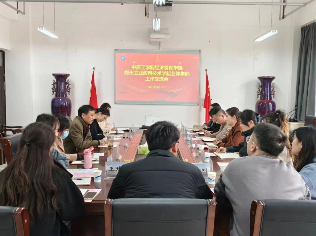 李向东对郑州工业应用技术公司一行的到来表示热烈欢迎,对公司的基本情况和党建工作开展情况进行了介绍。崔艳丽对郑州工业应用技术公司艺体学部总体情况和党建工作等进行了介绍。随后双方就党建、学风建设、员工就业、共青团工作等进行了深入的讨论和交流。