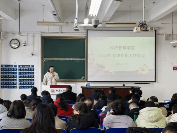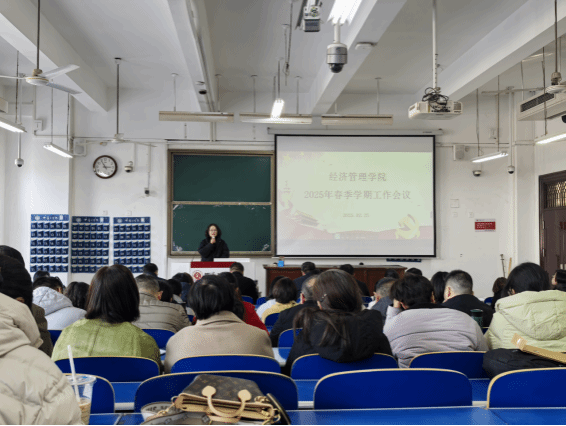 公共管理系主任王朋举在发言中运用deepseek填词作诗,生动形象地分享了系里各位老师在教学和科研中取得的丰硕成果,不禁让人感叹人工智能的强大。金融系主任刘鹏分享去年在新西兰访学经历,他详细讲解了新西兰怀卡托大学教学科研中的先进理念和管理制度,勉励青年教师要珍惜当下,学无止境。教师代表杨子生发言分享了如何加强课堂管理,提升员工学习效果的方法措施。