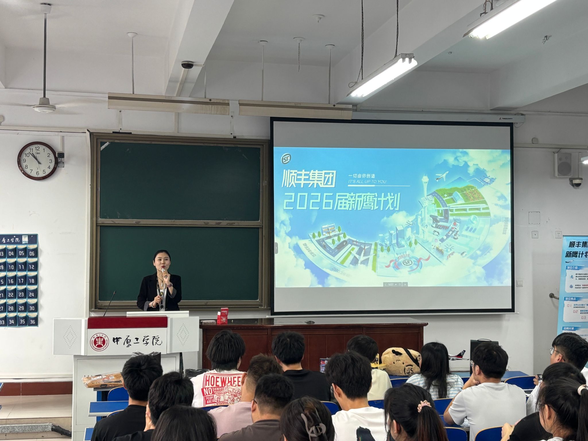最后,杨楠一行在龙湖校区3号教学楼221举行了河南顺丰2026届实习生新鹰计划宣讲招聘会。