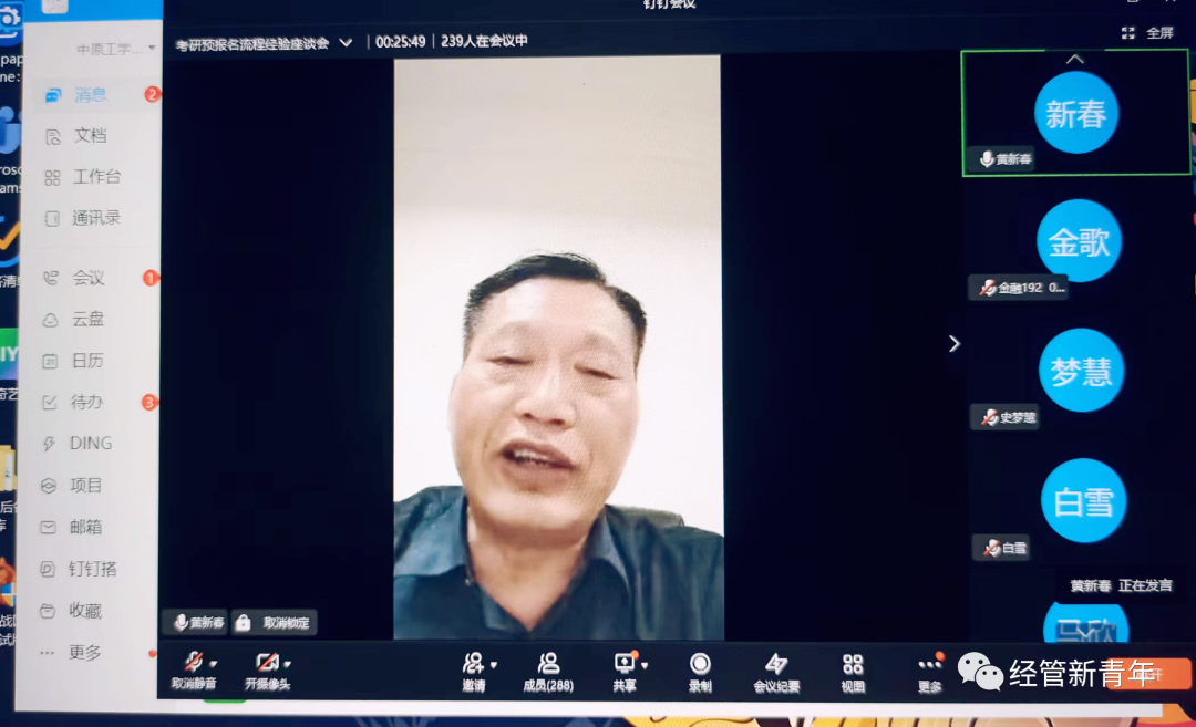 beat365在临近考研预报名阶段,为提高加强同学们对研究生考试的认识,提高考研热情,增强考研信心,明确考研目前,公司在线举办了考研报名交流座谈会,特别邀请了公司黄新春经理,黄经理有着30多年的教学科研经验,在会上为员工们提供了方向,指明了道路!