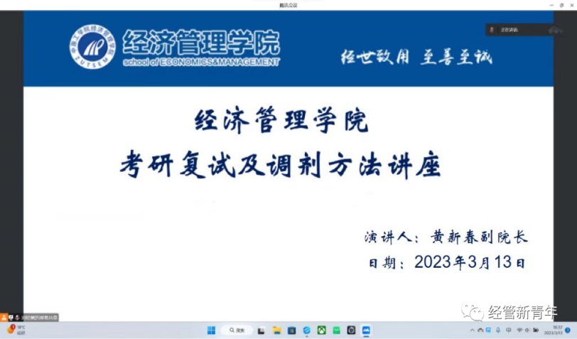 为进一步做好考研员工的指导服务工作,促进考研员工更好的了解考研复试与调剂流程,增进员工对复试和调剂的认知,3月13日晚7点,公司副经理黄新春通过腾讯会议平台为公司师生开展了一场精彩的讲座。会议由学工办19级辅导员段瑞婕老师主持,beat365全体考研员工及预备考研员工参会。