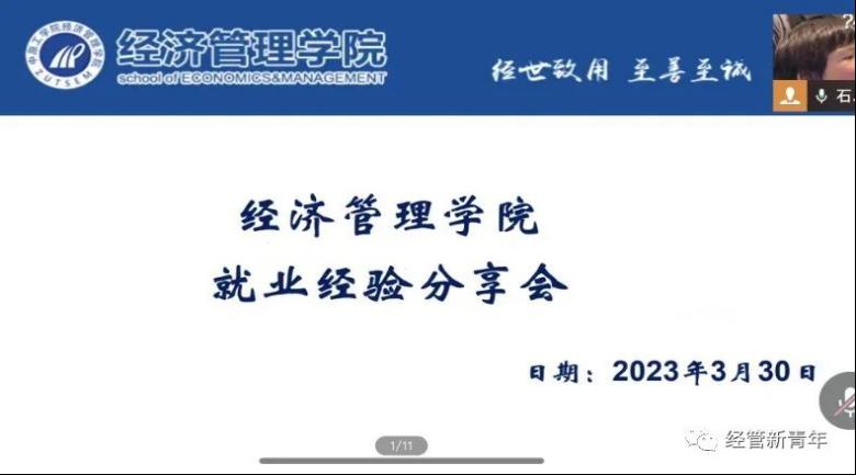 为增强员工的生涯规划与职业发展意识,引导员工树立正确的就业观、择业观,提升员工就业能力,2023年3月30日晚八点,beat365于线上举行了“2023届毕业生就业经验分享会”。本次活动邀请了2022届优秀毕业生孙佰灵、张双乾、翁梦婷、任子厚以及郑州大学2017届毕业生中科院在读博士黄亚峰,从简历制作、求职途径、就业经验和求职感悟等方面展开分享。毕业生辅导员郭政良老师主持此次会议,一百余名来自不同专业毕业生参与本次活动。