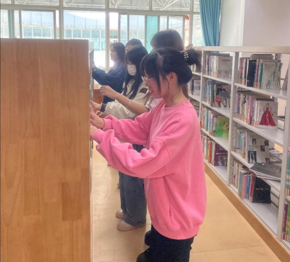 随后,同学们被分配到不同的岗位,在负责老师的悉心指导下,以精神饱满的状态和不怕吃苦的干劲在相关区域开展工作,贡献出自己的一份力量。在图书馆中同学们的身影随处可见,他们穿梭于书架间的小道,沉浸在劳动的趣味当中,乐此不疲。