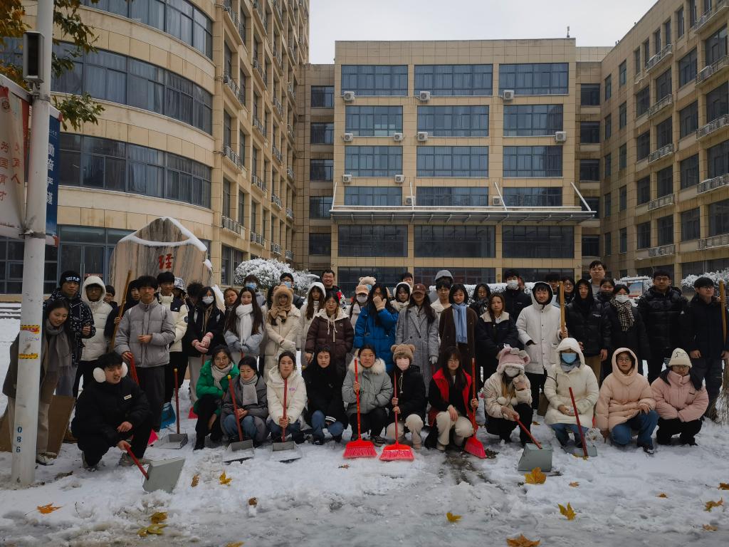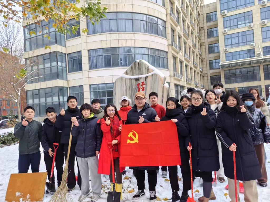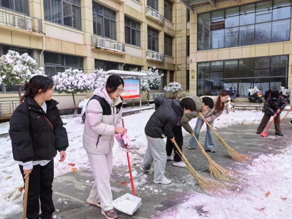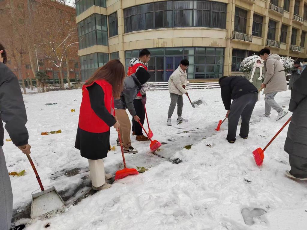 “忽如一夜春风来,千树万树梨花开。”飘落的雪花将校园装饰成独具一格的雪城。2023年12月11日,为了保障道路的畅通和同学们出行的安全,beat365员工党支部书记杨文乐、陈金、郭政良带领本科生员工党员积极开展了扫雪除冰保畅通工作。
