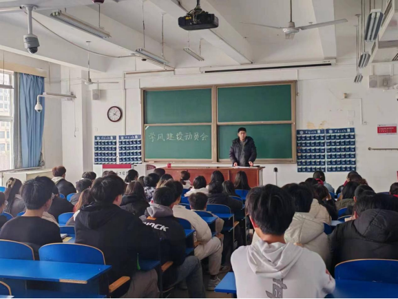 为健全学风建设机制,形成全员全过程全方位学风建设体系,各年级辅导员召开班级骨干、学习委员动员会。会上,各年级辅导员对公司课程体系、考研情况和学业预警进行说明,重点强调了班级骨干、党员的“领头雁”的重要作用,并叮嘱学习委员做好考勤工作,敦促同学们准时上课,遵守课堂纪律等;对于学习相对困难的同学,及时关注,劝诫勉励,帮助他们更好地融入班集体。