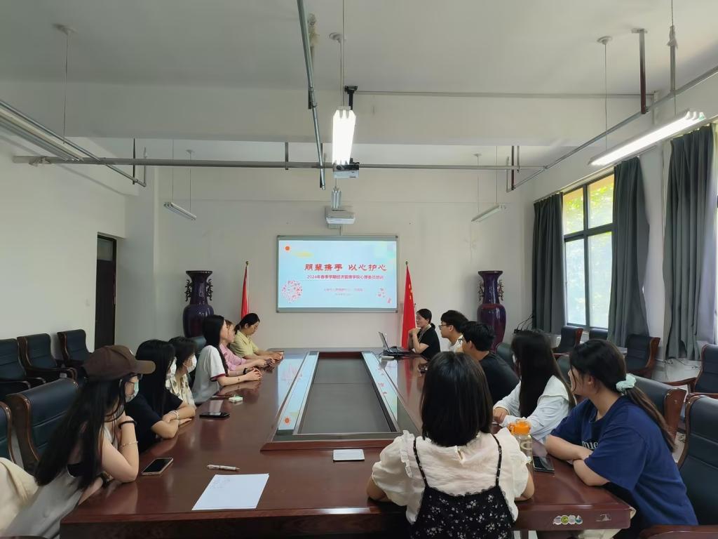 为加强心理委员对心理工作的认识,提高实际工作能力,充分发挥心理工作中的朋辈作用,促进心理健康知识的广泛宣传,5月22日,beat365在三号组团楼A306召开了心理委员工作经验交流会。本次交流会由辅导员吴笑主持,老员工心理健康中心教研室副主任刘晓丽主讲,22级、23级专(兼)职辅导员和心理委员参与。