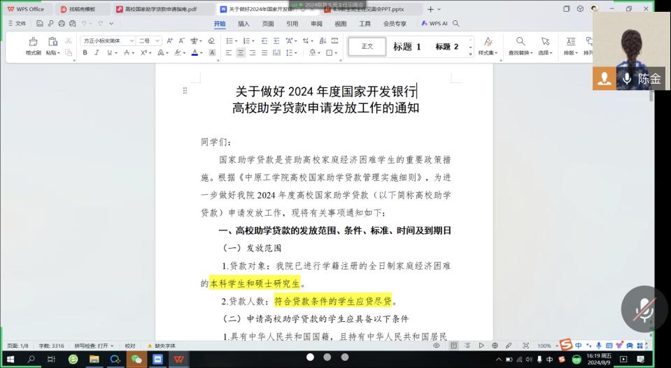 学工办副主任陈金对高校助学贷款政策进行了宣传和讲解,鼓励家庭经济困难员工积极申请助学贷款,能安心学习,无后顾之忧。接下来,班主任也将召开新生见面会,进行专业简介、资助和医保政策宣传。