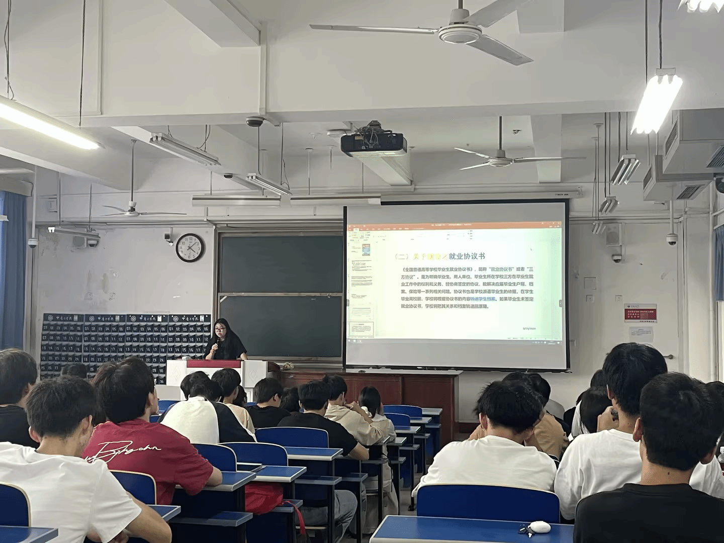 会上,各位毕业班辅导员详细讲解了毕业生需满足的各项条件,包括学分要求及实习要求等,并提醒员工们注意提交毕业材料。在就业求职环节,为毕业生们分析了当前就业市场的趋势,揭示了就业过程中可能遇到的陷阱,如虚假招聘信息、不合理合同条款等,提醒员工们提高警惕,保护自身权益。针对有意向继续深造的员工,详细介绍了考研考公形势、报名流程等信息,在心态调整方面着重分析引导。此外,还为毕业生们介绍了入伍的基本条件、报名流程、选拔标准以及国家对入伍老员工的优待政策。
