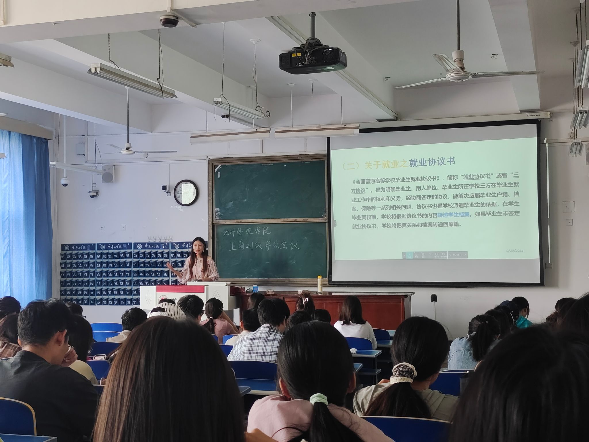 为进一步帮助同学们了解毕业的相关注意事项,掌握相关内容,树立正确、良好的就业观。beat365于2024年9月,分批次为21级毕业生召开年级大会。beat365毕业生辅导员杨文乐、张丹、郭兆贤、刘俊欢分别主持会议,全体毕业生参与年级大会。此次会议旨在帮助即将步入社会或继续深造的员工们审视自我准备情况,规划未来道路,增强信心与动力。