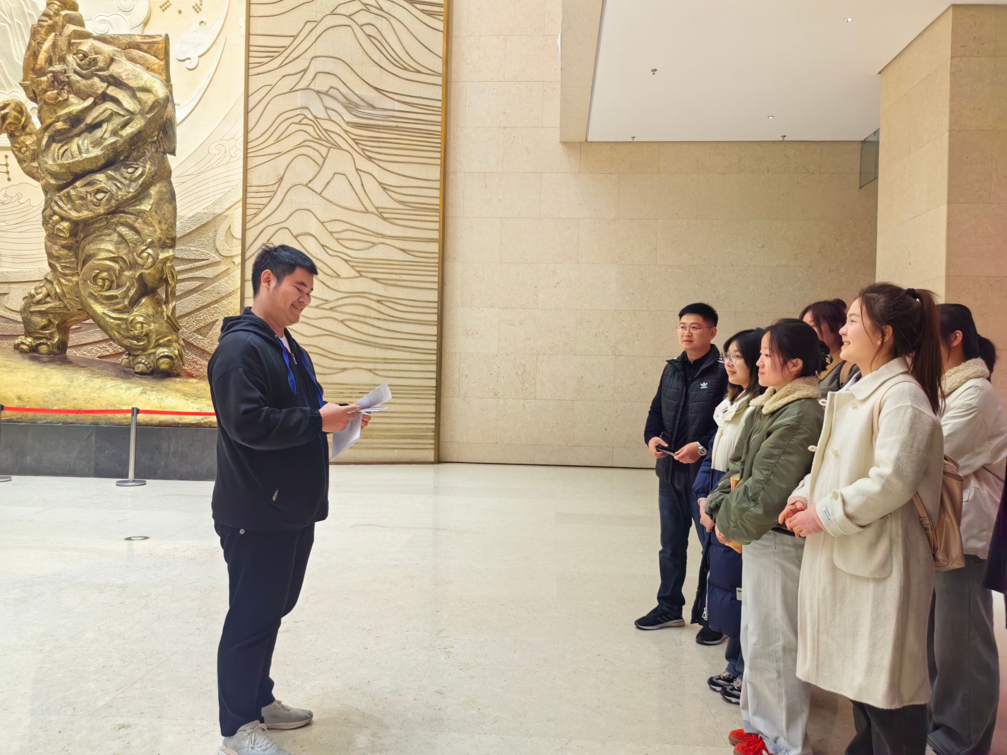 活动以“文物寻宝打卡”为主要形式,通过抽签确定分组,领取任务卡后开启寻宝之旅。活动前,由本科生第四党支部成员代表孟裕臻老师阐释了活动内容,并指出此次活动对弘扬中华优秀传统文化,增强党员文化自信,鼓励党员在传承中华优秀传统文化、赓续中华文明薪火中展现担当作为具有重要作用。