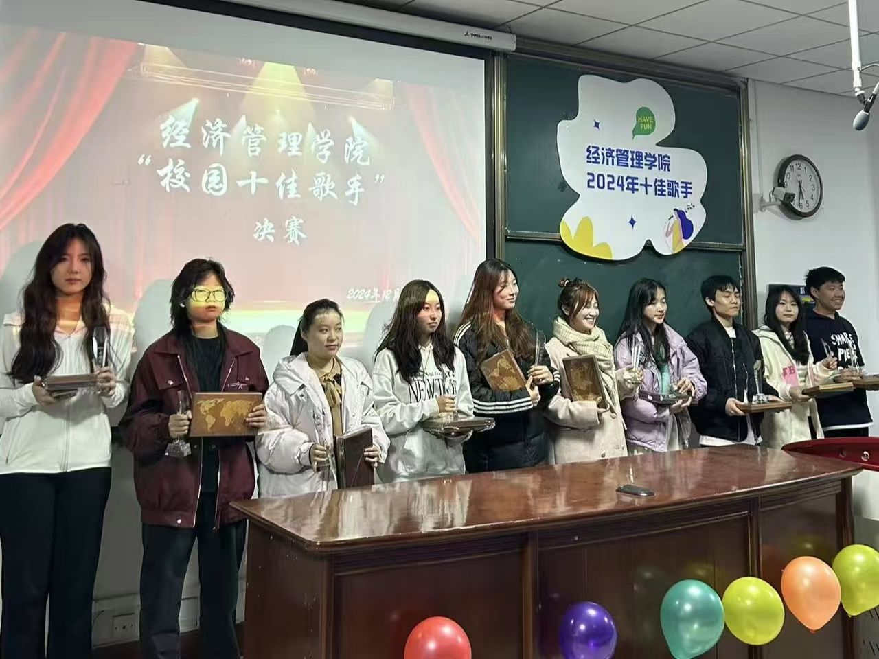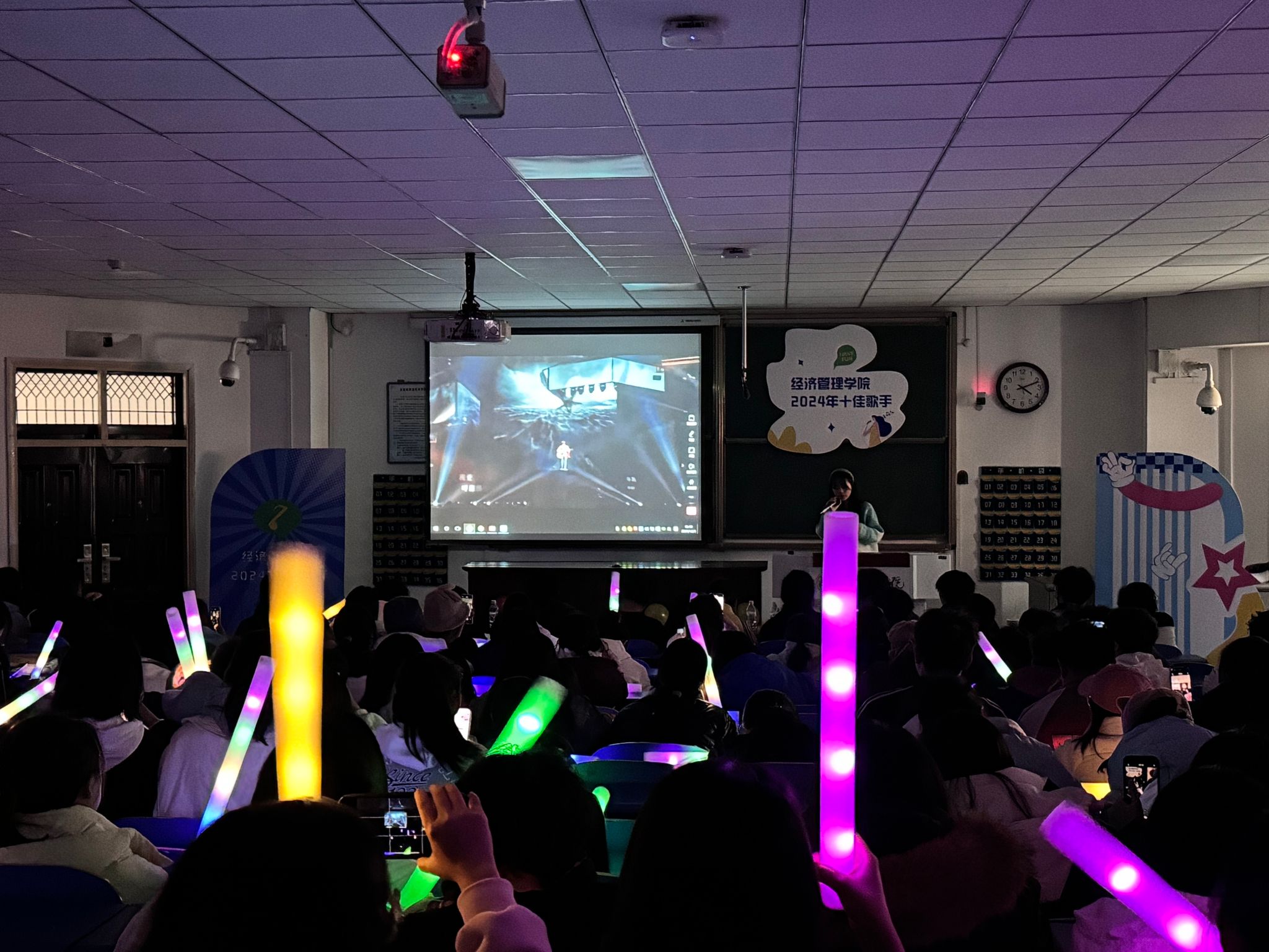 2024年12月3日下午,随着最后一个音符的完美落地,本年度“十佳歌手”比赛在四号教学楼301教室圆满落下帷幕。此次比赛吸引了众多热爱音乐、怀揣梦想的同学踊跃参与,他们用动人的歌声和出色的舞台表现力,为观众带来了一场视听盛宴。