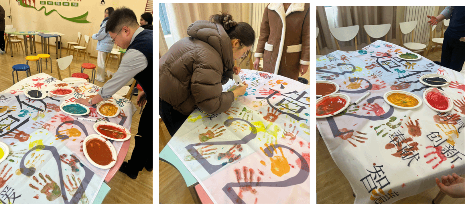 活动现场,孟裕臻和吴笑与同学们携手,以创新的设计理念,共同绘制出一面面别具一格的班旗。每一面班旗都凝结了同学们对班级的深厚情谊和对未来的美好期许,是他们青春梦想的具象化展现。最后,同学们在班旗上印下手印,签下了自己的名字,这是对班级的承诺,也是对未来的期许。