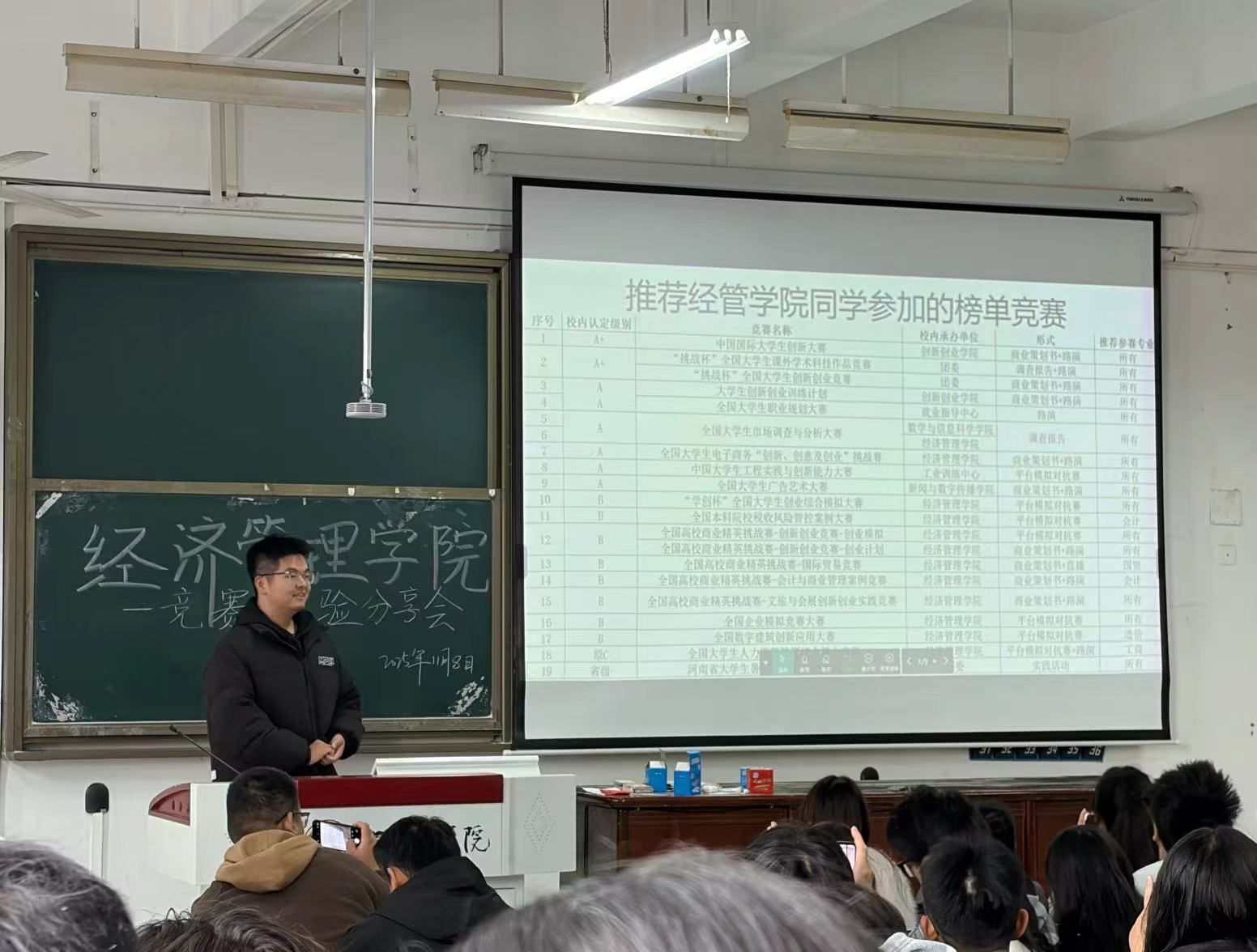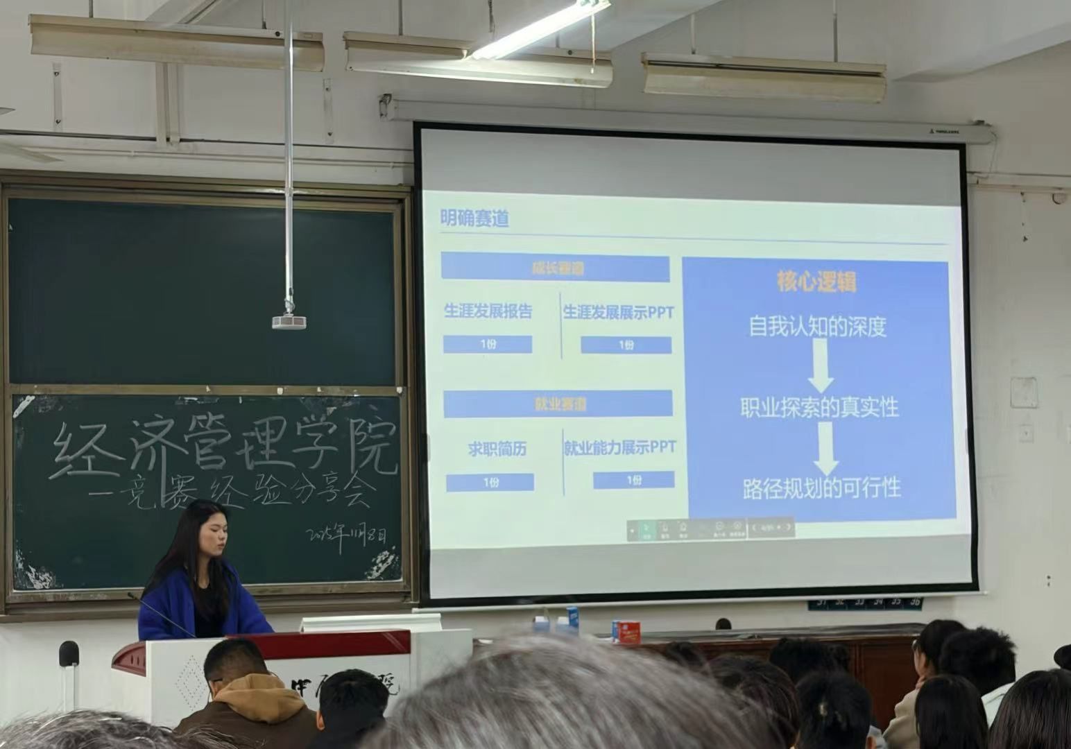 为帮助2025级新生掌握各类竞赛备赛技巧,提升个人竞争力,11月8日上午,我院在3号教学楼102教室举办竞赛经验分享会。会议由工商管理专业2022级杨廷知、工商管理专业2023级王天赐以及国贸专业2022级朱志强担任分享嘉宾,2025级共120余名员工参与。