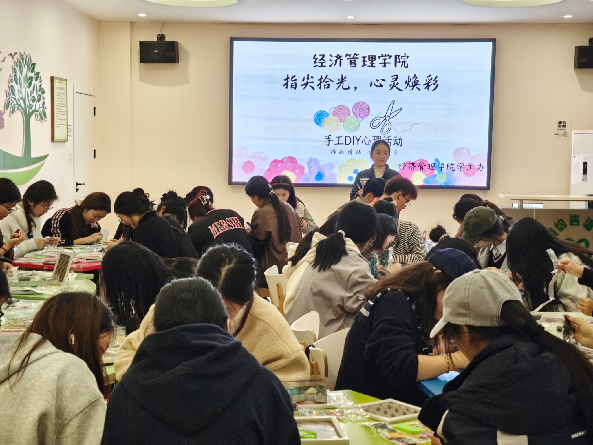 活动伊始,负责公司心理工作的老师吴笑以“轻节奏、深沉浸”为核心原则,向同学们细致分享了手工创作的实用技巧与日常心理调节的小方法。通俗易懂的讲解不仅为大家扫清了创作顾虑,更引导同学们卸下心理包袱,以放松从容的心态迎接这场创意之旅。