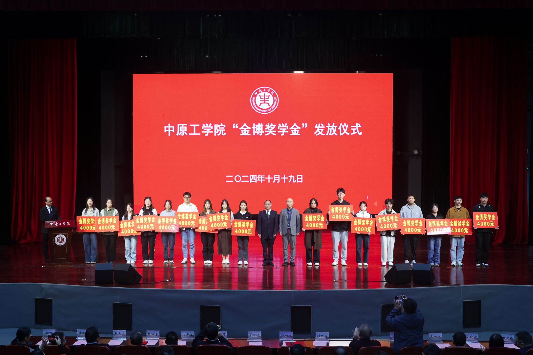 营销2000级员工、北京金博高德教育科技有限公司董事长张向涛向公司捐款100万设立“金博奖学金”,董事长夏元清代表公司接受捐赠,并与张向涛共同向50名获奖员工颁发“金博奖学金”。宋晓炜为北京金博高德教育科技有限公司、郑州市超前涂料有限公司进行校外实习基地授牌。方敬永为常州市武进区委政法委督查科科长李世锋、开封市禹王台区人民检察院第二检察部一级检察官关曙光、信阳珠江村镇银行平桥支行行长孟献超、康桥悦生活服务集团有限公司副总裁刘汉星颁发校外辅导员聘书。杨为学为北京金博高德教育科技有限公司董事长张向涛、上海郑阳公关策划有限公司总经理郑阳;郑州楷励教育科技有限公司总经理李新浩颁发校外创新创业导师聘书。